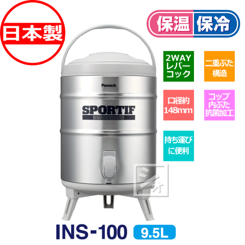 ウォータージャグ ステンレスキーパー 9.5L (INS-100) 日本製 広口タイプ ピーコック魔法瓶