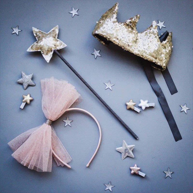 チュール素材に小さなゴールドのグリッタードットで覆われたリボンは、 女の子の心をくすぐる遊び心あふれたデザイン。